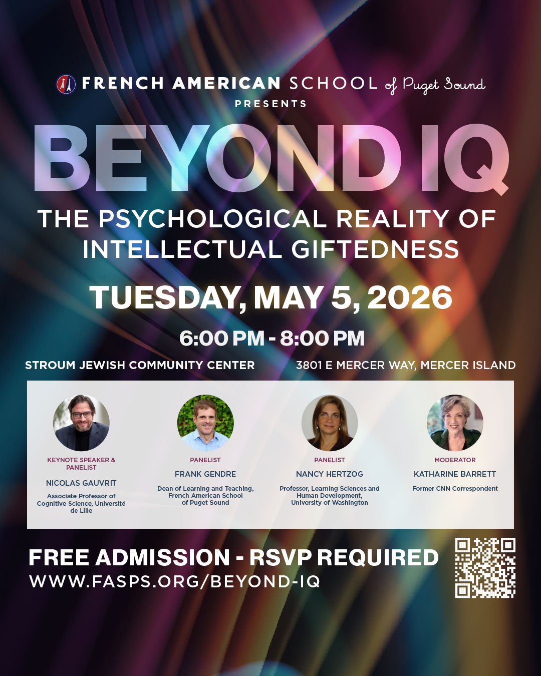 Rejoignez l’Ecole franco-américaine du Puget Sound (FASPS) pour un colloque (en anglais) sur la réalité psychologique du haut potentiel intellectuel — Beyond IQ: The Psychological Reality of Intellectual Giftedness.