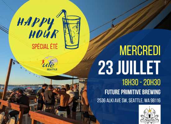 - Les Apéro Happy Hour (réservés aux adultes) se déroulent dans un restaurant ou café alternativement sur Eastside et Seattle, un jeudi ou vendredi soir.